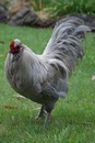Purebred Araucana. Araucanas originate from Chile. They are a medium sized bird who lay a blue-green egg, are hardy and good foragers.