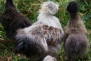 Purebred Chinese Silkies in a variety of colours. Of all the ornamental chicken breeds, the Silkie is one of the most popular and beloved, and certainly one of the most entertaining to watch. Silkies originated in the Far East. They have black skin and bones and 5 toes instead of the normal 4. They are complete with gorgeous hair-like plumage and an incredibly sweet temperament, ideal as childrens pets. In addition, Silkie hens make wonderful brooders and mothers, and are even known to adopt baby ducks if given the chance! They are a good egg layer and have a small cream or tinted egg.